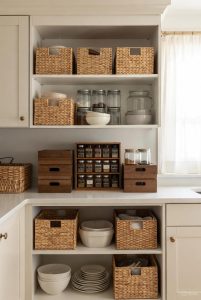 من همهٔ ادویههامو تو باکسهای حصیری دربدار گذاشتم، هم گرد و خاک نمیگیرن هم کابینت خلوتتره.کلی از این سبد و جا ادویه های خوشگل تو فروشگاه مامان زیبا داریم !