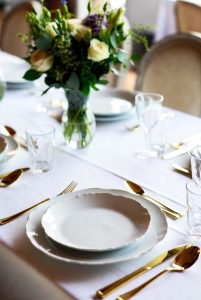 یه گلدون گل طبیعی رنگی روی میز … یه سرویس قاشق چنگال طلایی…سرویس چینی سفید… کابینت روشن وسایل کرم و سفید رنگ…همینا کافیه که آشپزخونهات زنده بشه.